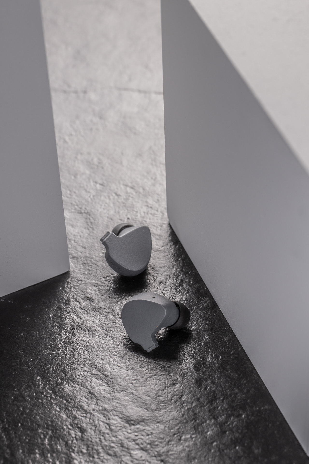 灵感来自现代主义建筑。这款产品在追求纯粹质朴的同时融入了不等比设计关系,并赋予设计语言交互性。因为面板涂层的特殊物理性质,它们会随着时间的流逝逐渐脱落。之后,用户可以自己动手进行打磨,在耳机面板上留下自己的痕迹,与氧气和时间交织,氧化形成一件独一无二的艺术品。